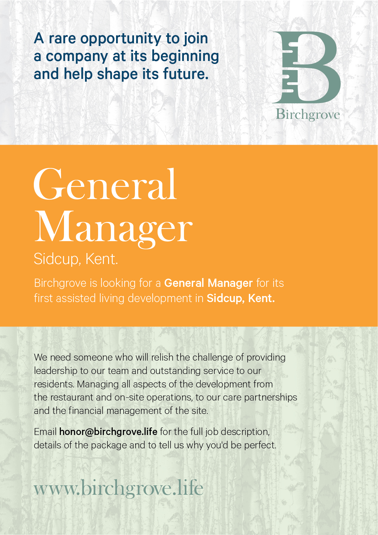 We're looking for an excellent GM for our new Assisted Living Development in Sidcup, Kent. Opening in April 2019, we'd love to have someone on our team now who can manage all aspects of the launch, recruit the team, commission the kitchen and welcome in our first new residents.