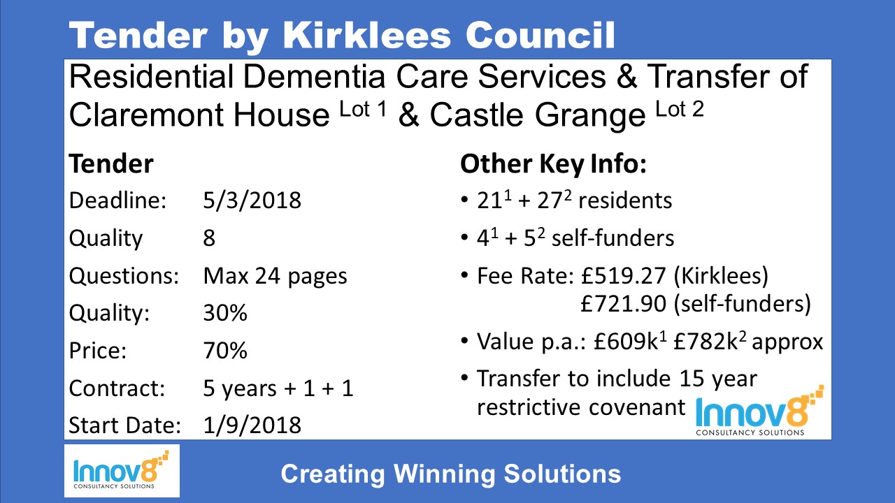 Tender by Kirklees Council - Services for & Transfer of Two Dementia Care Homes