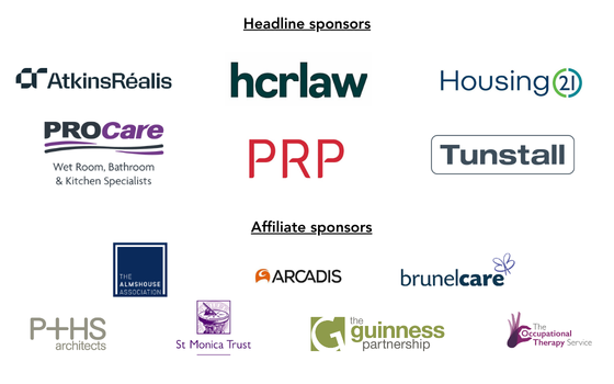 A big thank you to our Headline sponsors, AtkinsRéalis, HCR Law, Housing 21, PROCare, PRP and Tunstall Healthcare, and to our Affiliate sponsors, The Almshouse Association, Arcadis, BrunelCare, P+HS Architects, St Monica Trust, The Guinness Partnership and The Occupational Therapy Service.